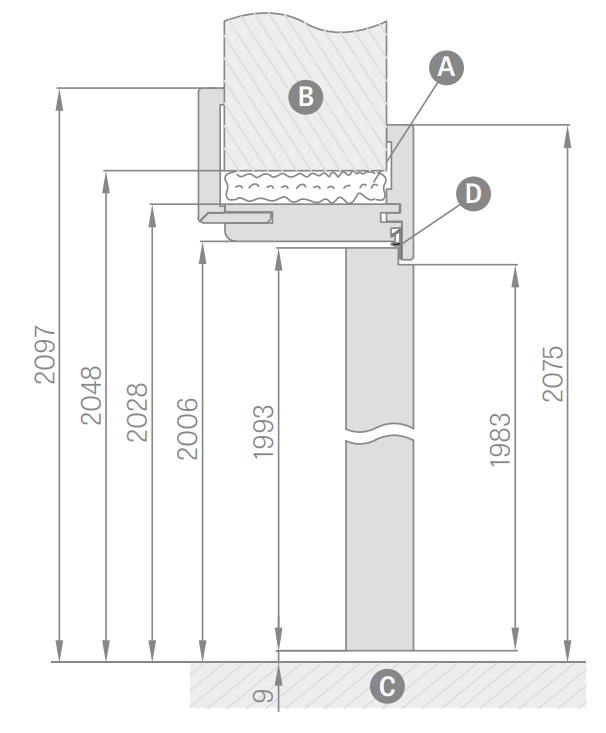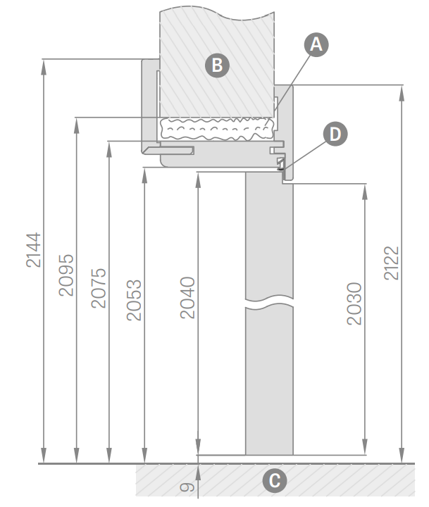 Regulovateľná jednokrídlová zárubňa Erkado pre reverzné dvere hrúbka steny 195-215 mm